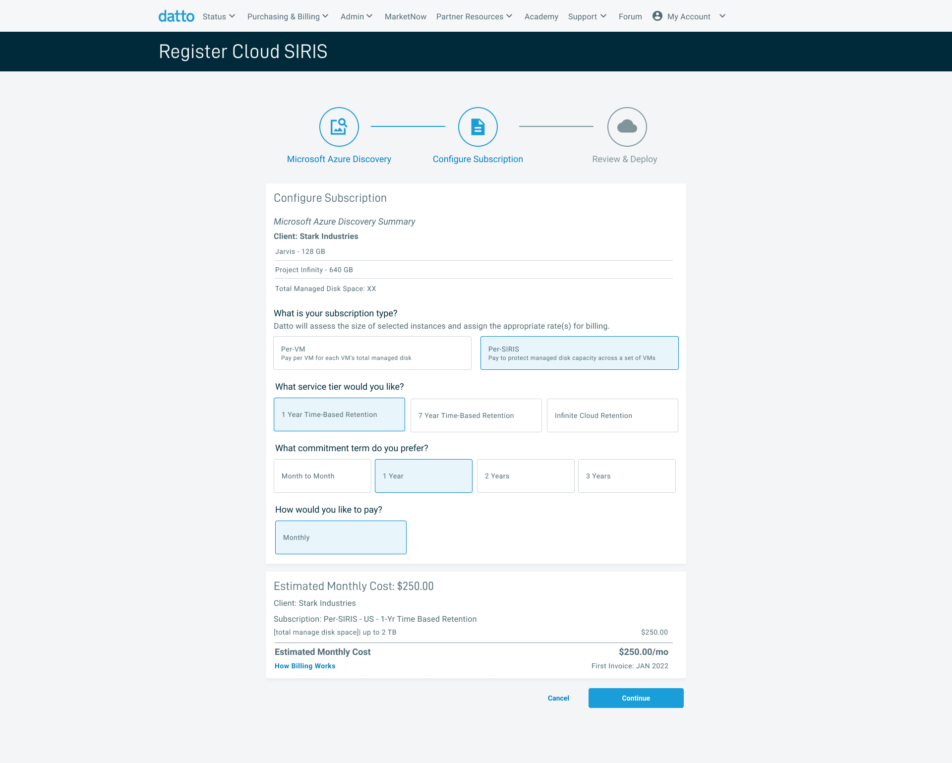 Purchasing - Prompted users to complete the tasks of registering and deploying a Cloud SIRIS